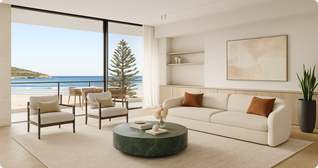 Designed for the discerning, the apartment offers a seamless blend of contemporary design and refined comfort–where everyday living meets elevated beach style.